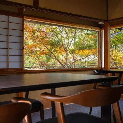 秋が深まる頃には、色鮮やかな紅葉をご堪能ください。 ※11月のみ個室料1万円(税込)頂戴いたします。